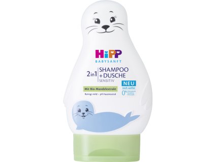 Kvalitní, dětský sprchový gel Hipp Babysanft se speciální ochranou s extraktem z mandlí a přírodními kvasinkami...
