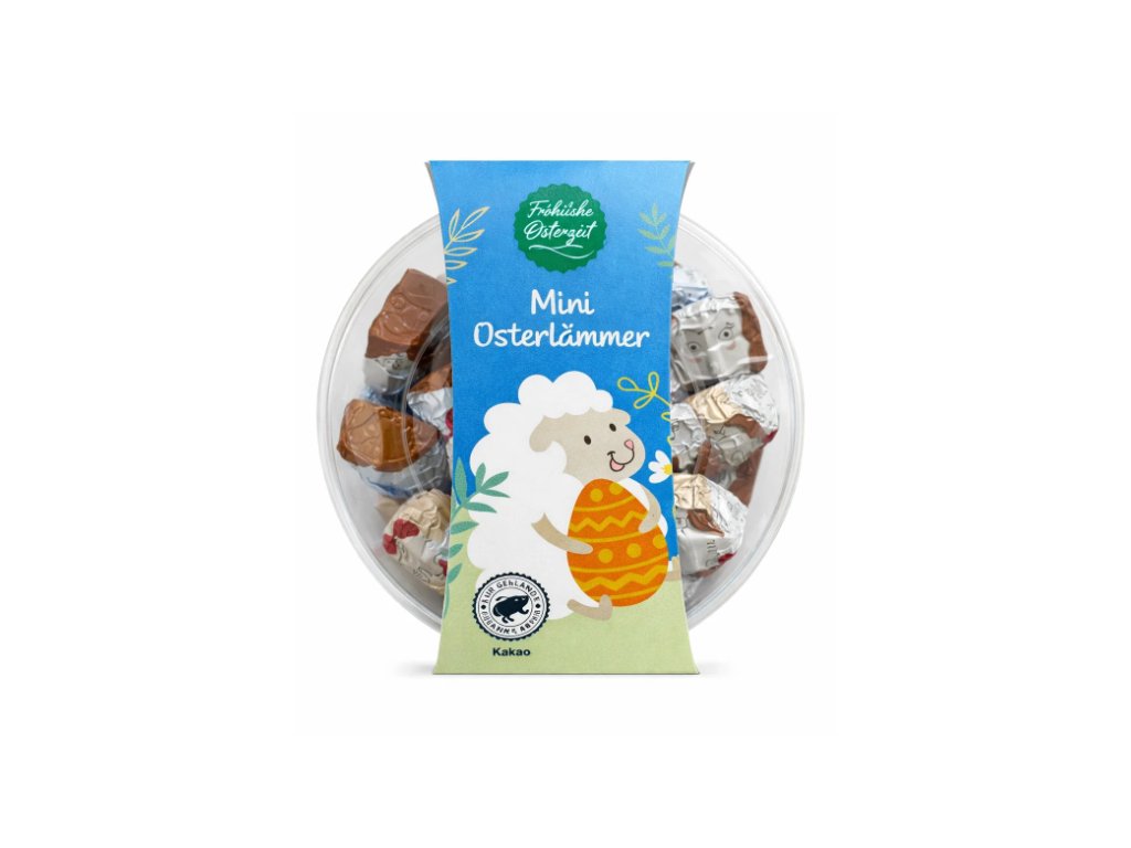 Chcete přinést na velikonoční stůl něco, co potěší všechny věkové kategorie – od nejmenších až po dospělé milovníky čokolády? Fröhliche Osterzeit mléčné čokoládové ovečky jsou perfektní volbou pro každého, kdo si potrpí na krásné detaily, prvotřídní chuť a poctivé složení. Každá čokoládová ovečka je zabalená v lesklé fólii s roztomilým designem, který vykouzlí úsměv a zároveň chrání lahodnou náplň z jemné mléčné čokolády s 33 % kakaa. Vyrobeno v Německu z Fairtrade kakaa – radost pro vás i pro planetu.