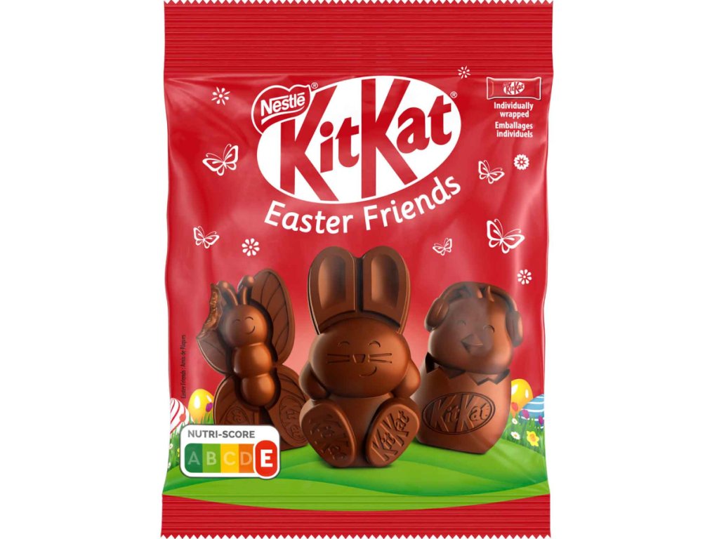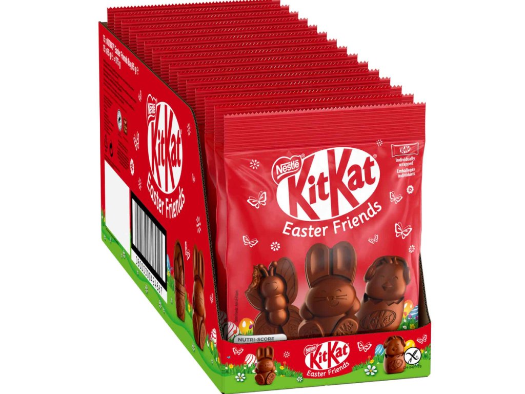KitKat patří do portfolia značky Nestlé a po desetiletí patří mezi nejoblíbenější čokoládové tyčinky na světě. Je známý křupavou strukturou a autentickou chutí. Německá edice KitKat Easter Friends přináší tuto oblíbenou chuť ve velikonočním kabátku – exkluzivně dovezeno z Německa.