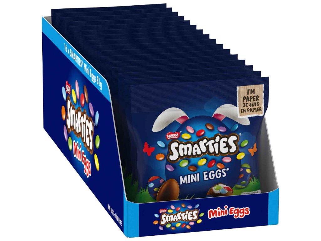 Smarties je ikonická značka od společnosti Nestlé, známá po celém světě díky svým barevným lentilkám s jemnou čokoládou uvnitř. Produkty Smarties si zakládají na kvalitních surovinách, přírodních barvivech a ekologickém přístupu k balení. Velikonoční edice Mini Eggs je limitovaná a běžně v ČR nedostupná – exkluzivně jen u nás.