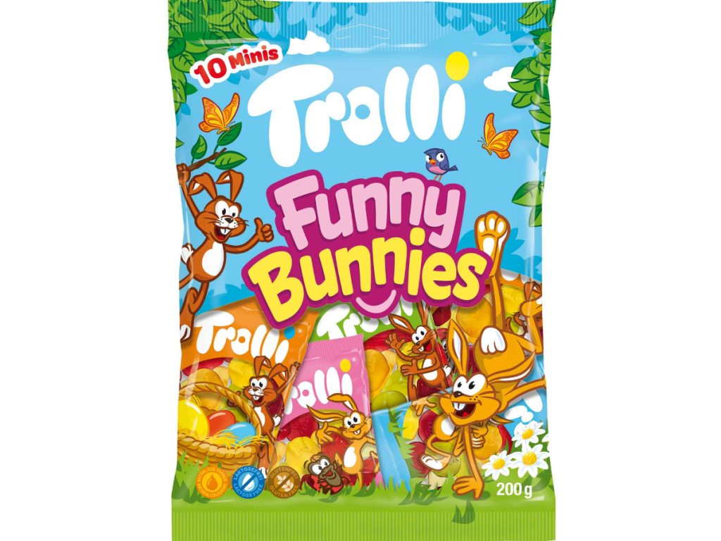 Mnohé želé směsi jsou baleny hromadně bez rozdělení do porcí. Trolli Funny Bunnies Minis přinášejí praktické individuální balení, které je hygienické a ideální pro rozdávání. Navíc vynikají pestrými barvami z barvících potravin a hravými velikonočními motivy.
