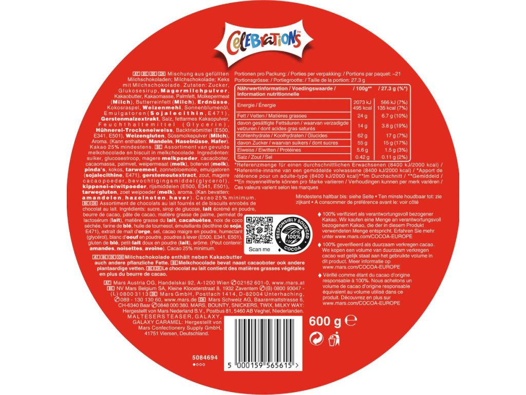 Celebrations patří pod křídla společnosti Mars GmbH, která je jedním z největších světových výrobců čokoládových výrobků. Tento výběrový mix vznikl v Německu a nabízí ikonické značky v mini formátu. V Česku často nedostupný ve velkém balení – exkluzivně dovezeno z Německa.
