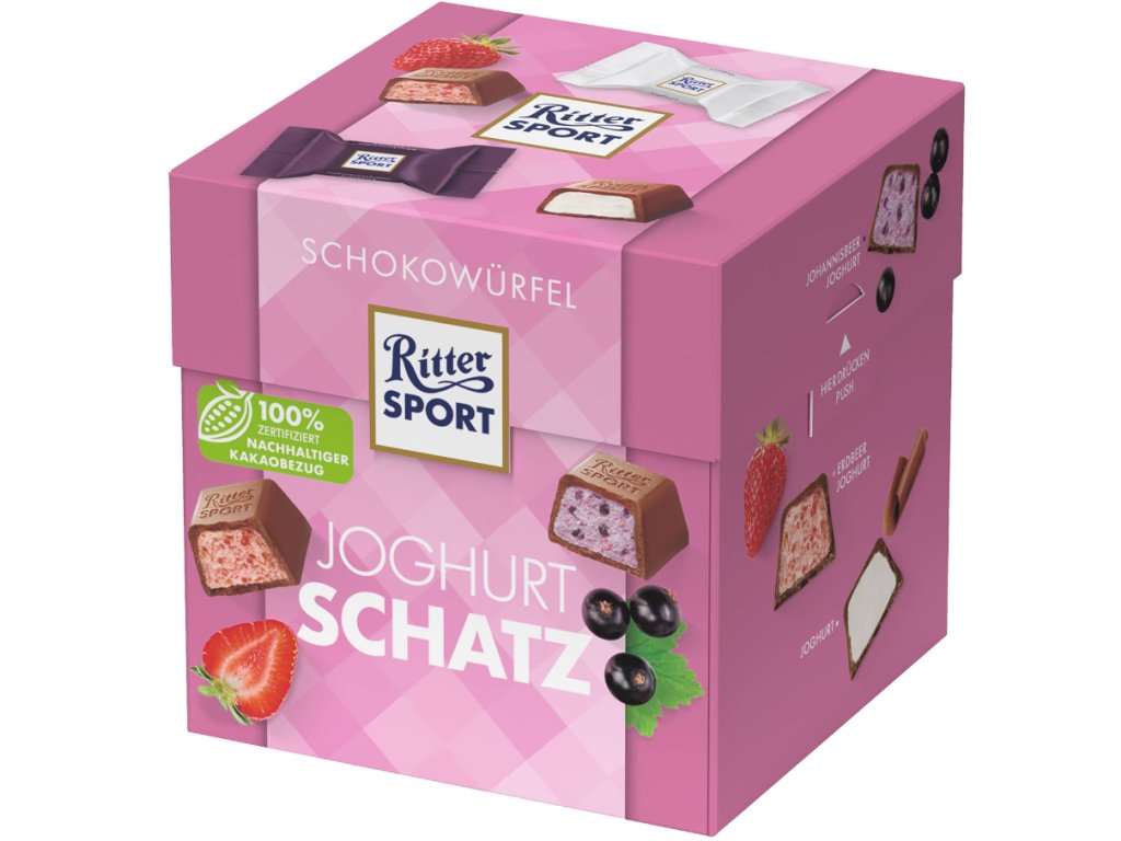 Ritter Sport je německý výrobce čokolády s dlouhou tradicí, známý kvalitou, inovacemi a výrazným čtvercovým tvarem. Všechny produkty jsou vyráběny výhradně v Německu, s důrazem na udržitelnost, poctivé suroviny a originální chutě. Produkty jako Schokowürfel Joghurtschatz nejsou běžně dostupné v českých obchodech – u nás exkluzivně.