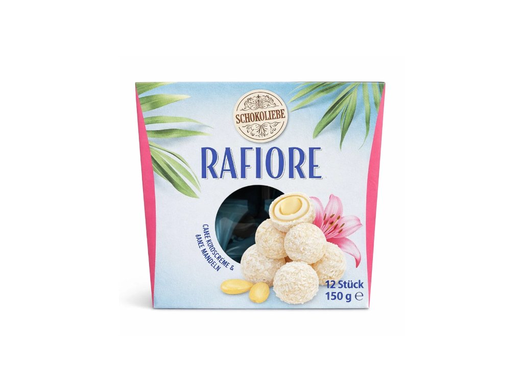 Na rozdíl od běžných kokosových cukrovinek, které často obsahují jen kokosovou aromu a minimum skutečných mandlí, Rafiore vynikají vysokým podílem kvalitního kokosu (15,7 % v celém výrobku) a pravou celou mandlí uvnitř každé pralinky. Bez zbytečných umělých barviv a přidaných látek. Zkrátka – německá kvalita, na kterou je spolehnutí.