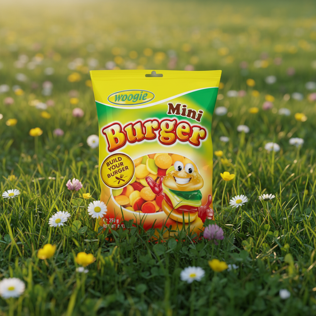 Značka Woogie vyrábí sladkosti od roku 1948 v Rakousku s důrazem na kvalitní suroviny a bezpečnost. Každý výrobek prochází přísnými kontrolami kvality EU. Mini Burgers jsou vyráběny v moderním závodě s certifikací ISO 9001, která garantuje stálou kvalitu. Rakouští výrobci jsou známí svou precizností a dodržováním receptur – proto mají Woogie produkty konzistentní chuť a texturu.