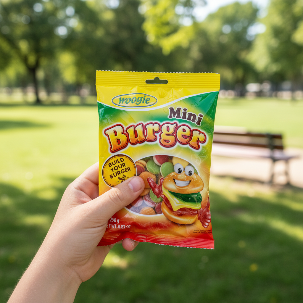 Na rozdíl od běžných gumových bonbónů obsahují Woogie Mini Burgers 5% přírodní ovocné šťávy. To znamená skutečnou ovocnou chuť bez zbytečné chemie. Každá vrstva má jinou ovocnou příchuť – od pomeranče přes citrón až po jahodu. Děti tak ochutnají pestrou paletu chutí v jednom produktu. Žádná umělá barviva, jen přírodní ovocné extrakty, které dávají gumičkám jejich živé barvy.