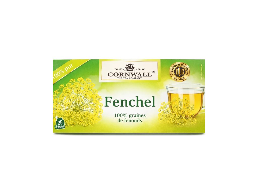 Cornwall fenyklový čaj je vyroben výhradně z pečlivě vybraných fenyklových semen, která jsou šetrně sušená a balená v praktických čajových sáčcích. Tento čaj je nejen příjemně sladký a aromatický, ale i mimořádně účinný. Ulevuje při nadýmání, podporuje trávení, je vhodný i při kašli a zahlenění. Díky nulovému obsahu kofeinu je vhodný pro každodenní pití i večer, a to bez jakýchkoliv vedlejších účinků.