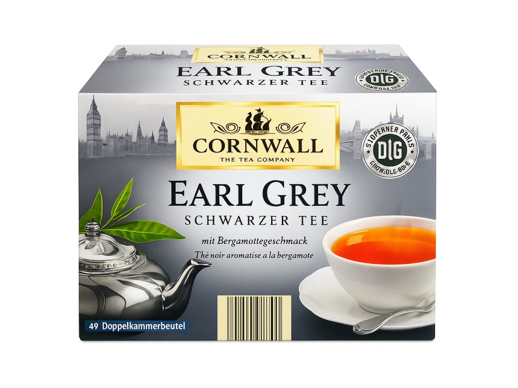 Původ: Cornwall černý čaj EARL GREY může pocházet z různých regionů, ale jeho receptura a výroba jsou pečlivě dohlíženy tak, aby zajistily konzistentní kvalitu.