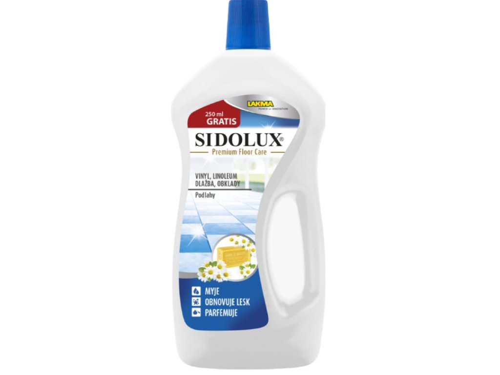 SIDOLUX čistič na podlahy je speciální prostředek určený pro mytí a údržbu vinylových podlah, linolea, dlažby, keramických obkladů a dalších povrchů vyrobených z těchto materiálů. Díky své výjimečné receptuře garantuje vynikající mycí schopnosti, obnovuje lesk podlahy a zabraňuje vzniku šmouh. S vůní marseillského mýdla přináší do vašeho interiéru příjemnou a osvěžující vůni.