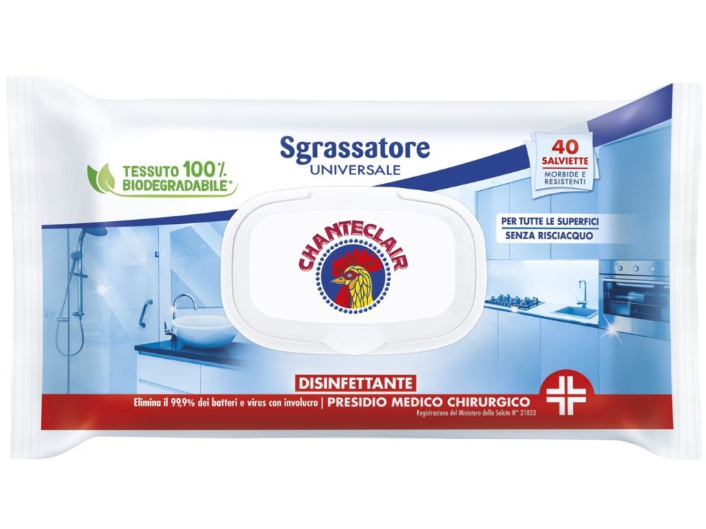 Dokonalá čistota na dosah ruky. Univerzální dezinfekční a odmašťovací ubrousky Chanteclair Sgrassatore Universale Disinfettante přinášejí rychlý, praktický a efektivní způsob, jak udržet vaši domácnost hygienicky čistou – bez nutnosti oplachování.