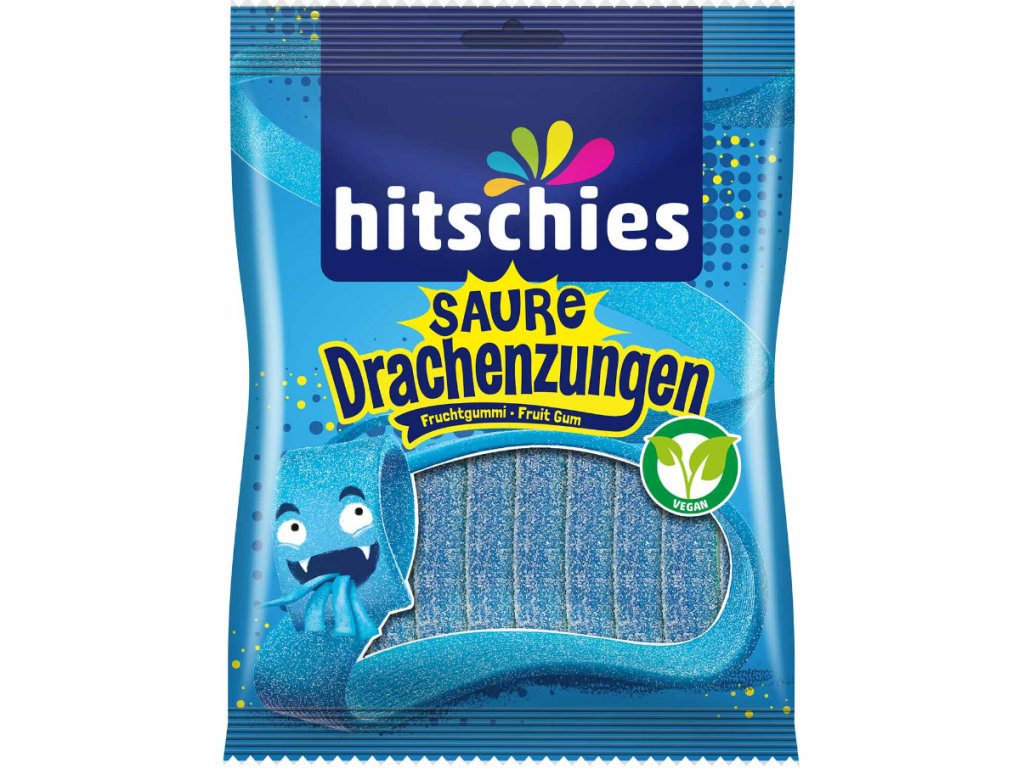 Hitschies kyselé dračí jazyky modré veganské želé s příchutí modré maliny 125 g - originál z Německa