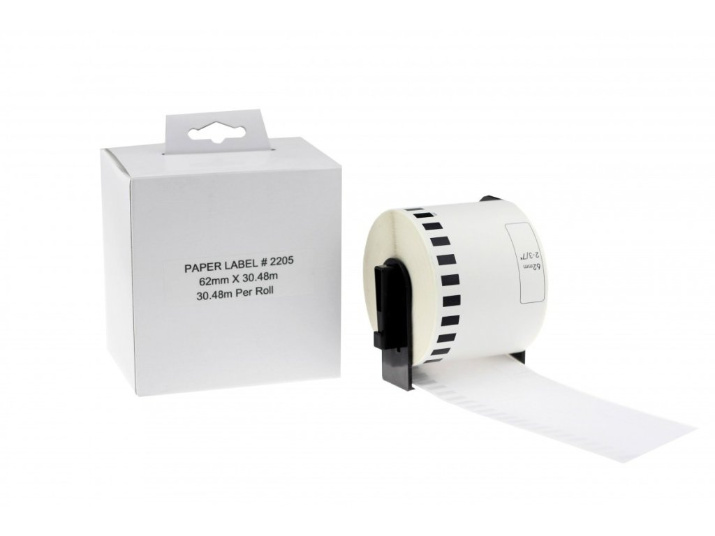 Brother DK-22205 - Etikety / Štítky Brother DK22205 (DK-22205) 62mm x 30.48m kompatibilní pro Brother QL, bílé s držákem - originál z Německa