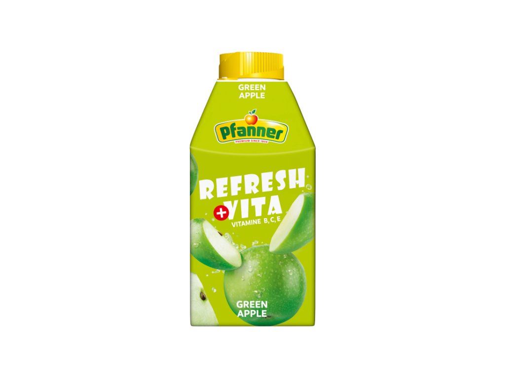 Pfanner Refresh Vita Green Apple je praktickým společníkem pro každý den. Osvěžte se chutí zeleného jablka a dopřejte si vitamínovou podporu, která vás bude provázet od rána až do večera.