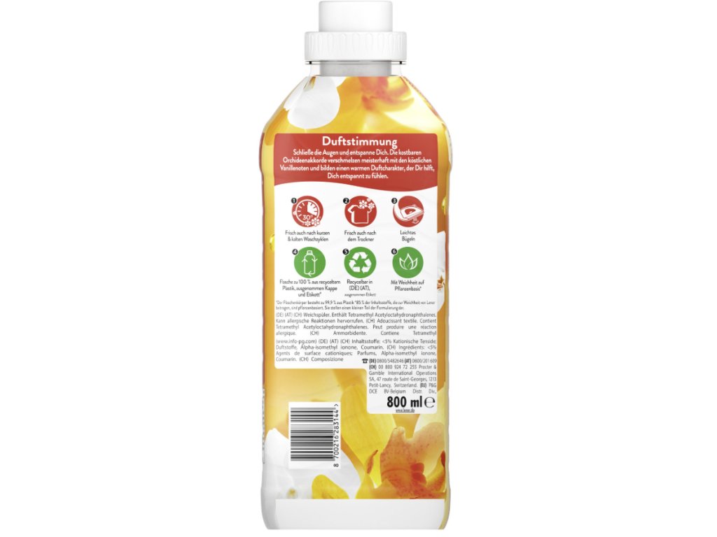 Zatímco některé levnější aviváže prádlo pouze provoní krátkodobě nebo mohou zanechávat těžký, chemický zápach, Lenor Orchidej & Vanilka nabízí jemnou, vyváženou a dlouhotrvající vůni. Oproti běžným produktům je šetrnější k pokožce a díky esenciálním olejům působí autentičtěji a přirozeněji. Navíc si můžete být jistí německou kvalitou a přísnými standardy výroby.