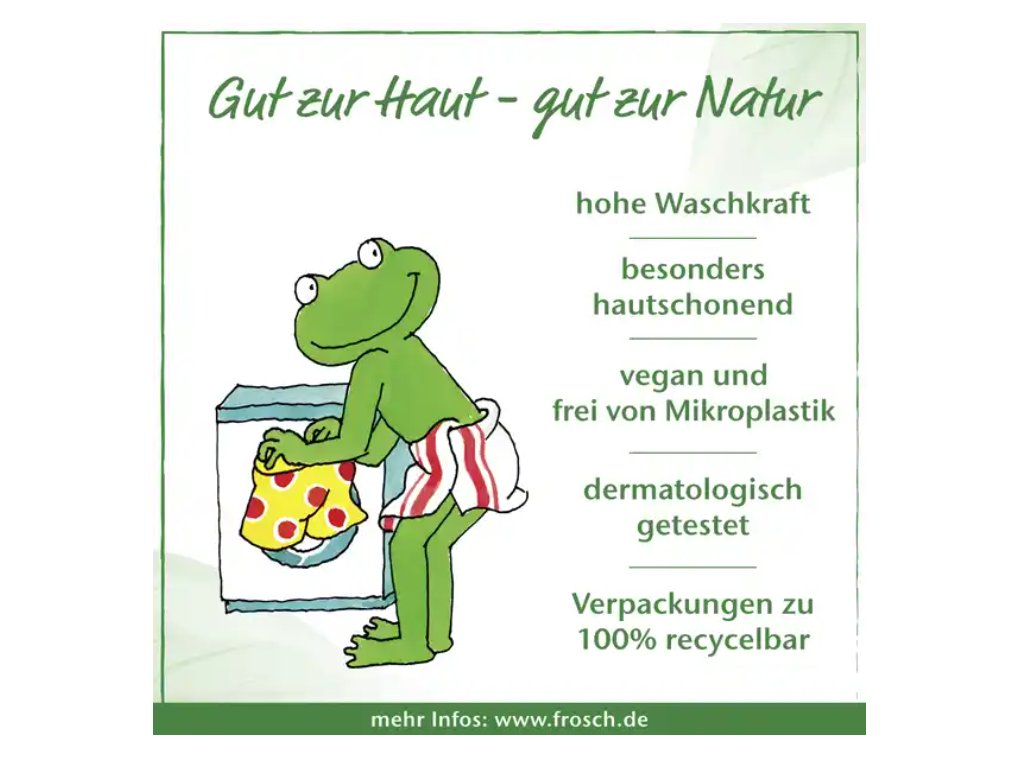 Šetrná péče o barvy: Frosch Colorwaschmittel je navržen tak, aby chránil barvy vašich textilií. Vysoká prácí síla zajišťuje, že i při pravidelném praní zůstanou vaše oblíbené barvy jasné a zářivé.