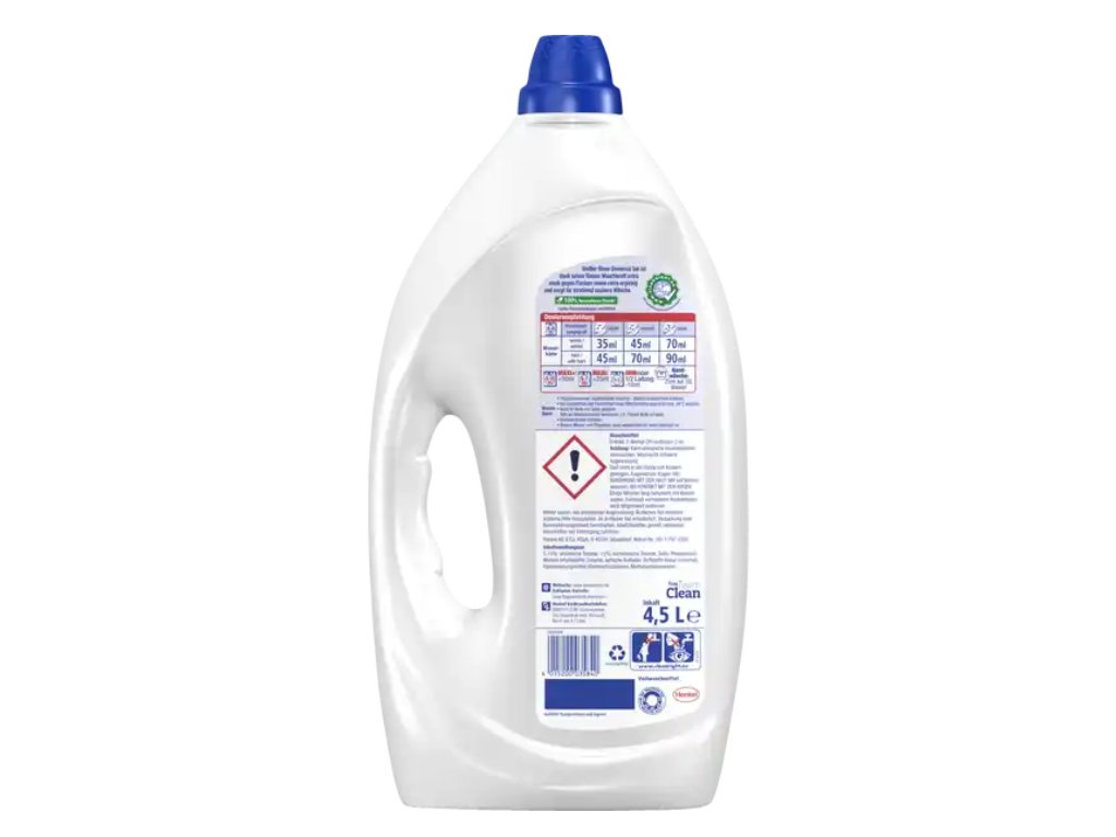 Běžné prací prostředky často vyžadují vyšší dávky a teploty, což zvyšuje spotřebu vody a energie. Weißer Riese je navržen tak, aby byl maximálně účinný už při nižších teplotách – a to bez kompromisů v kvalitě praní. Navíc jeho složení je šetrnější k životnímu prostředí díky koncentraci a 100% recyklovatelné lahvi. Německý původ zaručuje precizní účinnost a důvěryhodnou kvalitu.