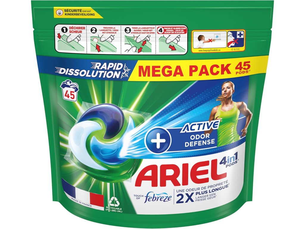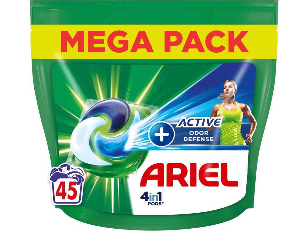 Užijte si svěží a čisté prádlo s Ariel gelovými kapslemi 4in1 Active Odor Defense Sport – pro maximální čistotu a dlouhotrvající svěžest.