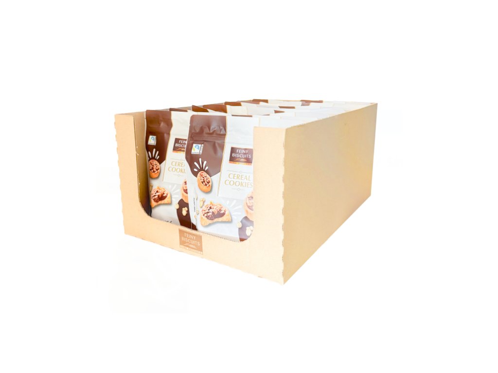 Cereální sušenky: Křupavé sušenky s obsahem müsli (12 %) přinášejí příjemnou strukturu a výživnější složení.