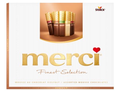 Prémiový výběr čokoládových pralinek Merci Mousse au Chocolat přináší kombinaci jemné čokolády a sametových mousse...
