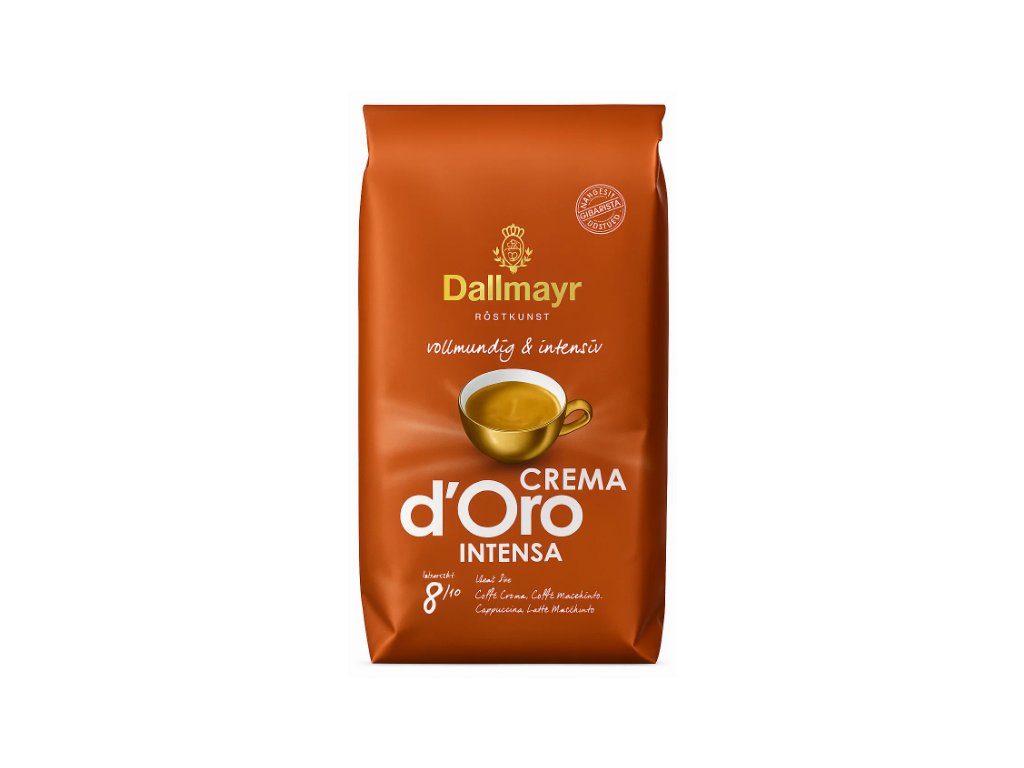 Dallmayr Crema d'Oro Intensa je výrazná káva, která si uchovává rovnováhu mezi silou a jemností. Obsahuje směs kvalitních zrn Arabiky a Canephory (tzv. robusty), což jí dodává bohaté tělo, krémovou pěnu a intenzivní chuťový profil. Díky šetrnému pražení v nízkých teplotách se v chuti objevují příjemné tóny čokolády, ořechů a jemné hořkosti, která není přehnaná, ale naopak povzbudivá a harmonická. Ideální volba pro všechny, kdo milují silnější, ale vyváženou kávu.