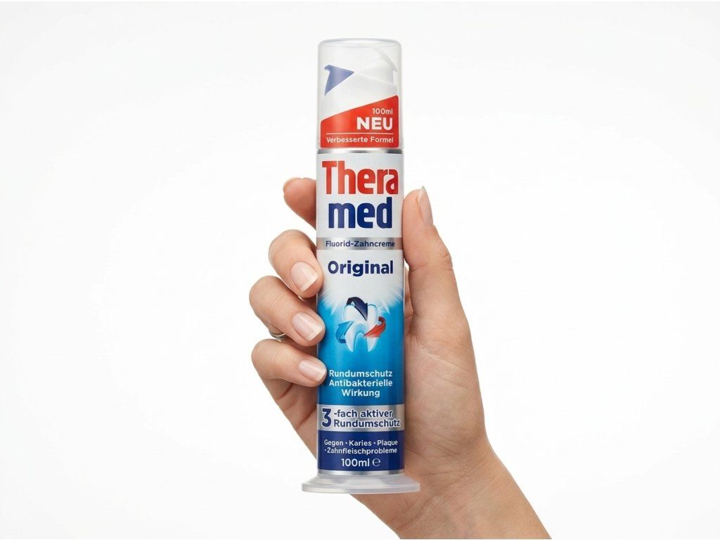 Theramed je osvědčená německá značka zaměřená výhradně na produkty pro ústní hygienu. Její receptury vycházejí z vědeckého výzkumu a splňují přísné evropské standardy pro bezpečnost a účinnost. Řada Theramed zahrnuje zubní pasty pro různé potřeby — od základní každodenní péče až po speciální ochranu dásní a citlivých zubů. V Česku běžně nedostupné — výhradně na NěmeckýEshop.cz.